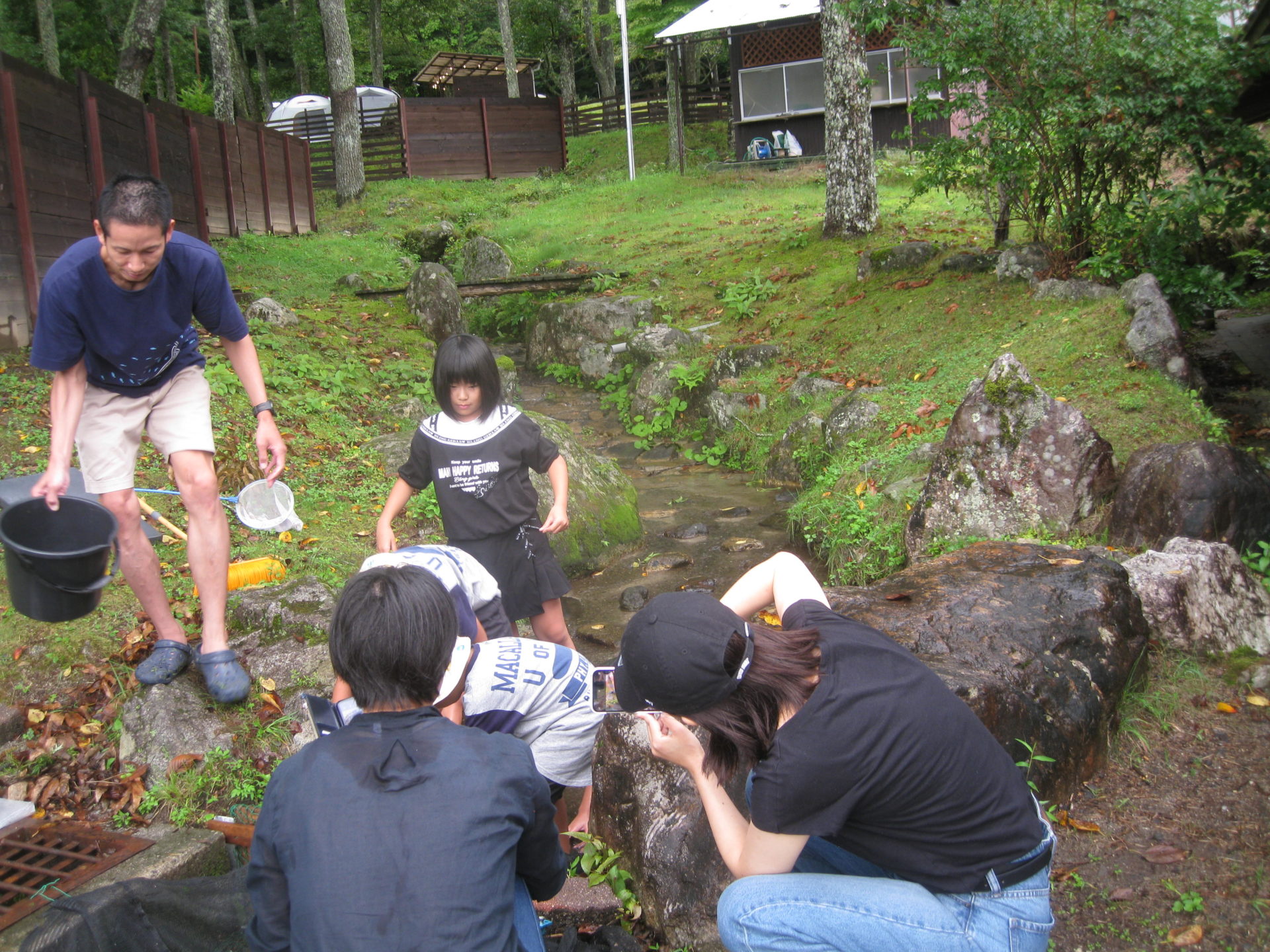 管理棟横の小川で行っています。