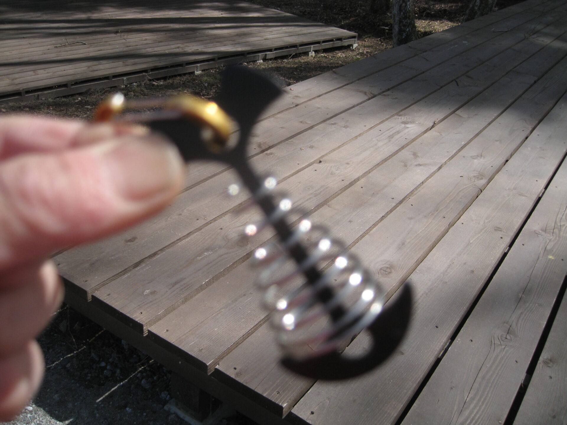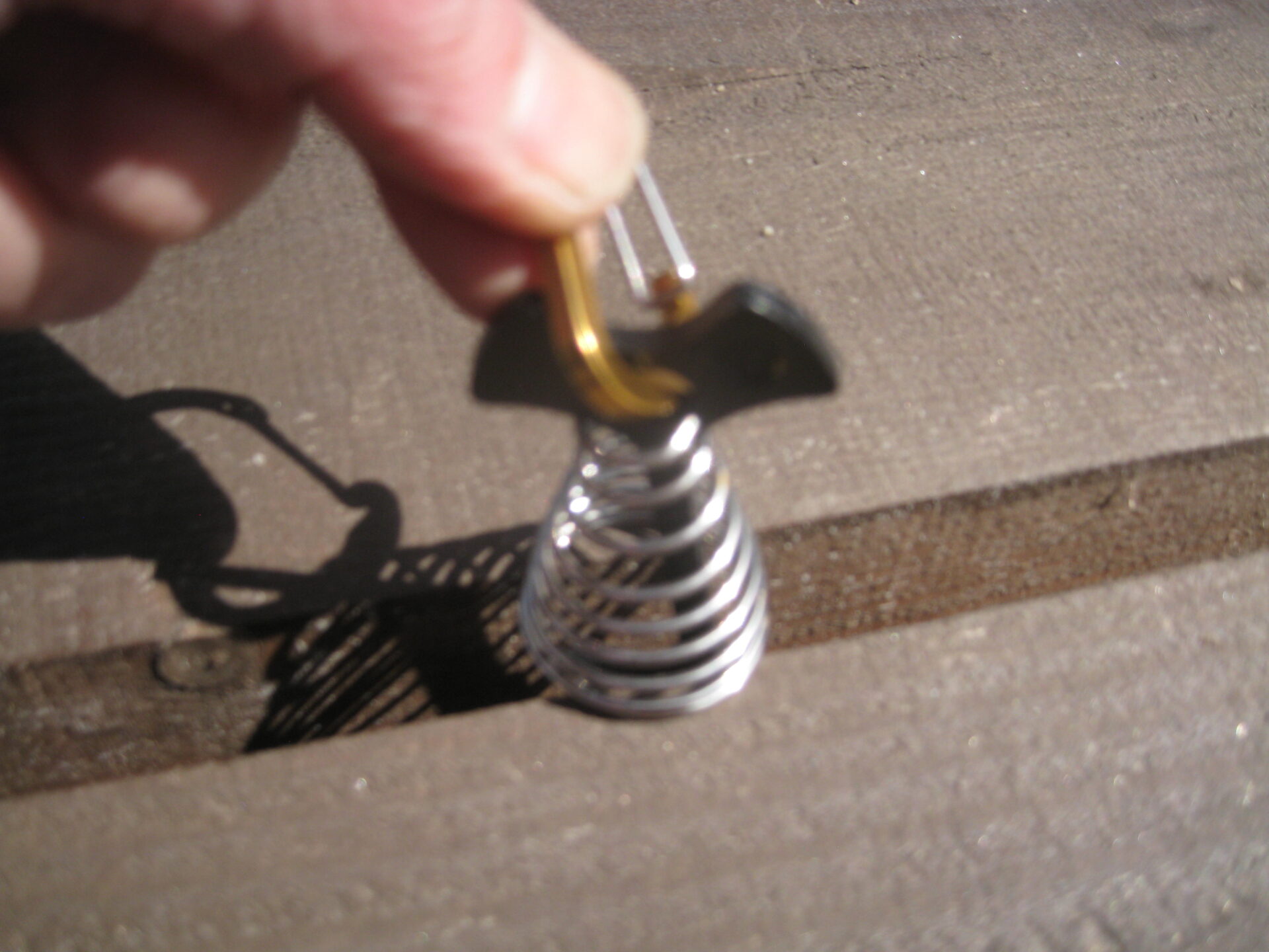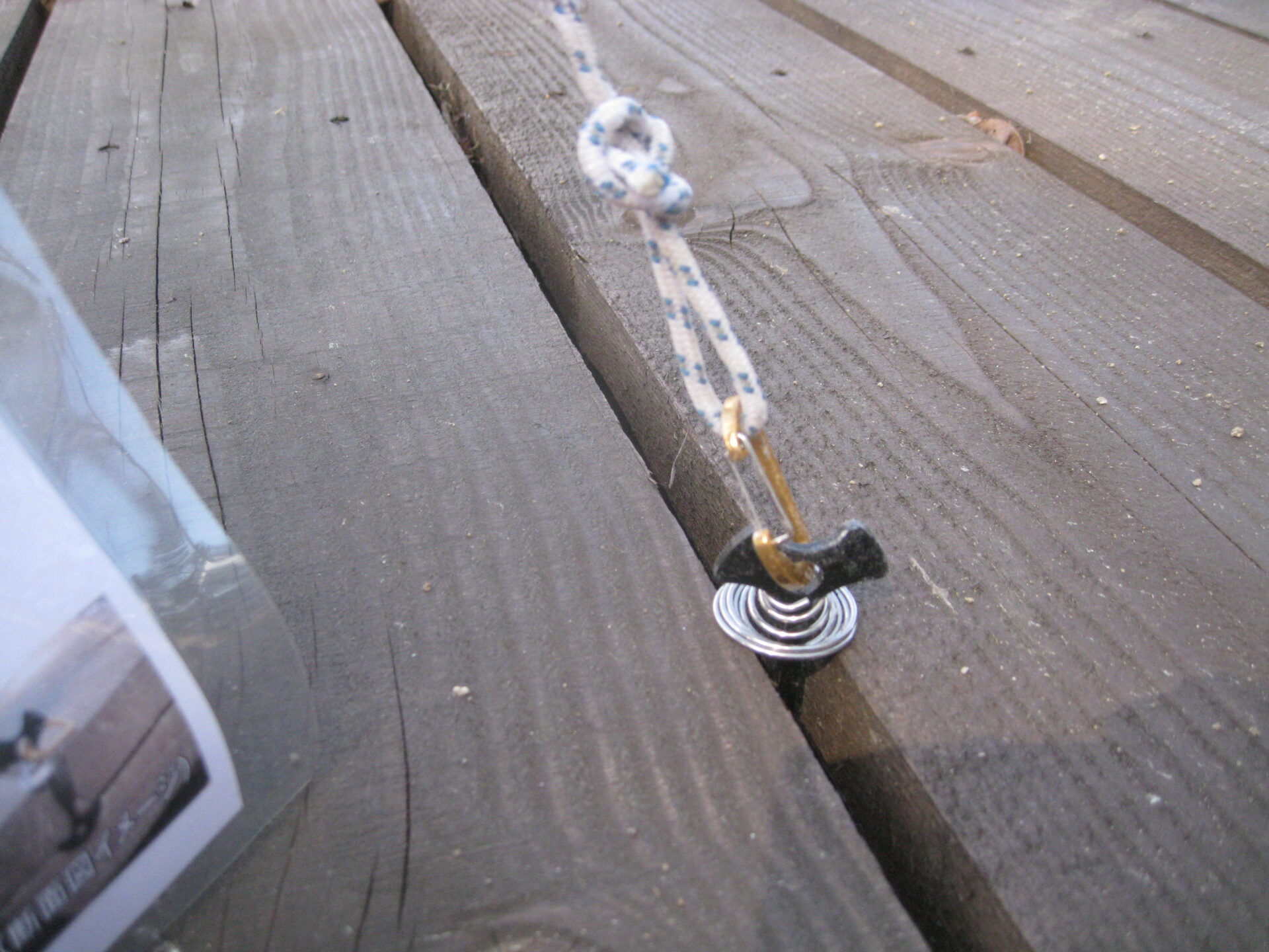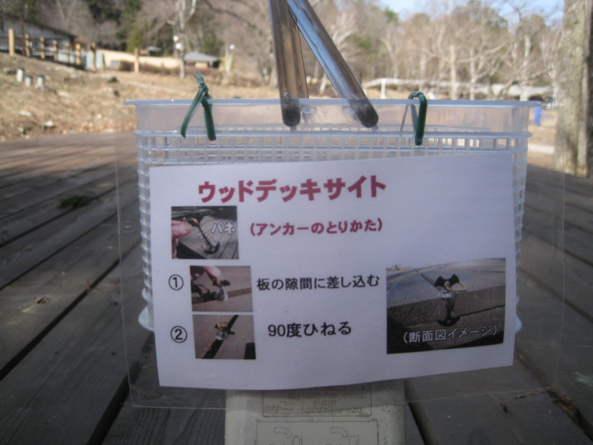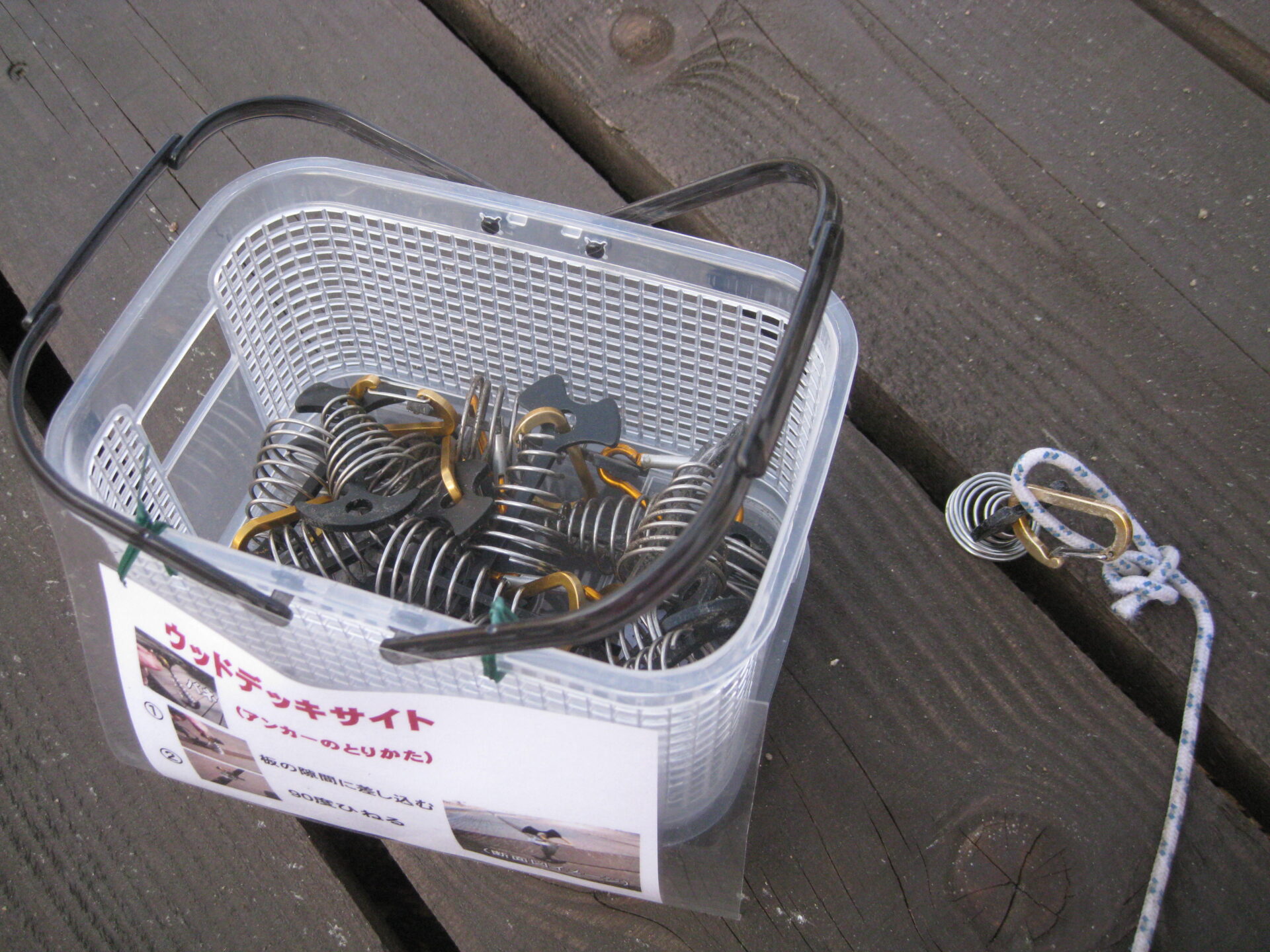 デッキのすき間に差し込み、ひねるだけです。